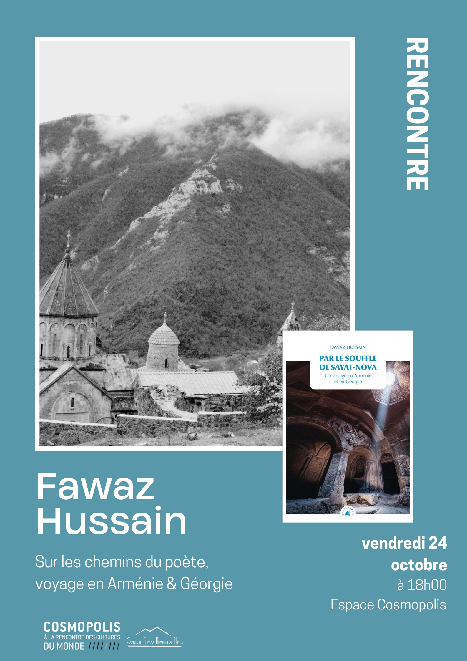 Sayat-Nova est un barde né en 1712 dans l'actuelle Géorgie. Sa poésie écrite en arménien , géorgien et azéri, il l'a partagé sur les routes du Caucase avant de devenir troubadour à la cour royale. Aujourd'hui encore, son influence sur la poésie arménienne est forte. Fawaz Hussain, écrivain kurde de langue française et traducteur, est parti sur les traces du poète entre l'Arménie et la Géorgie. Il nous emmène dans un périple au cœur des deux pays, entre l'intemporalité de la musique de Nova-Sayat et le contemporanéité du récit de voyage. Cette rencontre est organisée avec le collectif Franco-arménien de Nantes, dans le cadre de "Arménie, un peuple en vie à la croisée des cultures" qui se tient à Cosmopolis du 17 octobre au 15 novembre.