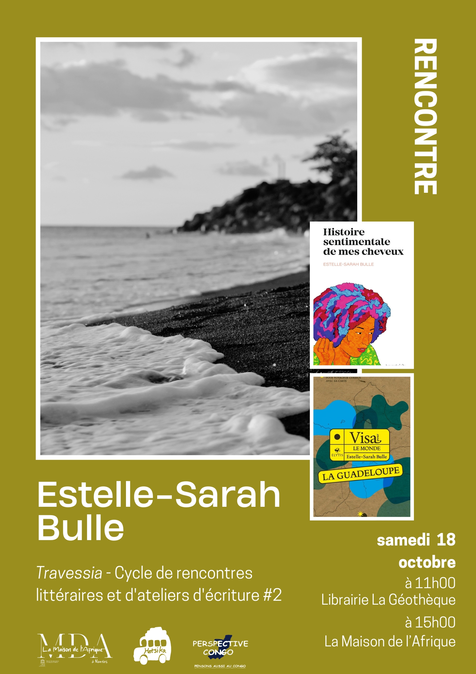 Le cycle Travessia se poursuit, en partenariat avec La Maison de l'Afrique à Nantes. Cette fois nous recevons l'écrivaine guadeloupéenne Estelle-Sarah Bulle, pour deux rencontres le samedi 18 octobre. À 11h, nous évoquons son territoire, qu'elle explore intimement dans le petit essai "Visa pour la Guadeloupe" édité par Elytis. C'est l'occasion d'entrer plus encore dans les lieux et les cultures qui habitent ses romans. À 15h, la Maison de l'Afrique, l'écrivaine poursuit dans l'exploration, cette fois-ci personnelle, avec son essai "Histoire sentimentale de mes cheveux" dans lequel elle aborde, par le biais de sa chevelure, son métissage tout en évoquant le racisme et les normes sociales. Elle montre combien le cheveu occupe une place centrale dans notre société et quel rôle ses propres cheveux ont eu sur son parcours personnel. En partenariat avec La Maison de L'Afrique à Nantes, Perspective Congo et Hetsika